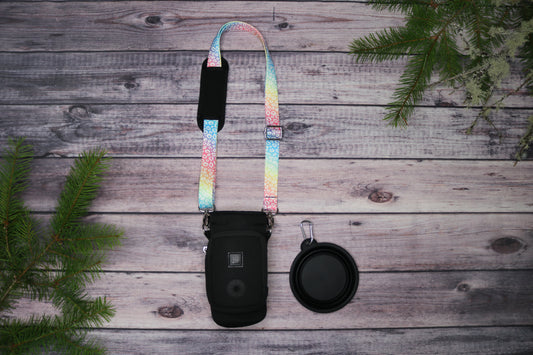 All collars, leashes, hands-free belts, fanny pack and water bottle straps are machine washable and can hang dry or be put in the dryer on low. Pro tip: putting your dog's items in a mesh wash bag is the perfect way to toss them in with your laundry. All clothing items are recommended to be machine washed inside out and put in the dryer on low to preserve the designs on your hoodies, t-shirts and tanks. Our products are meant to maintain their vibrancy and durability for many washes.