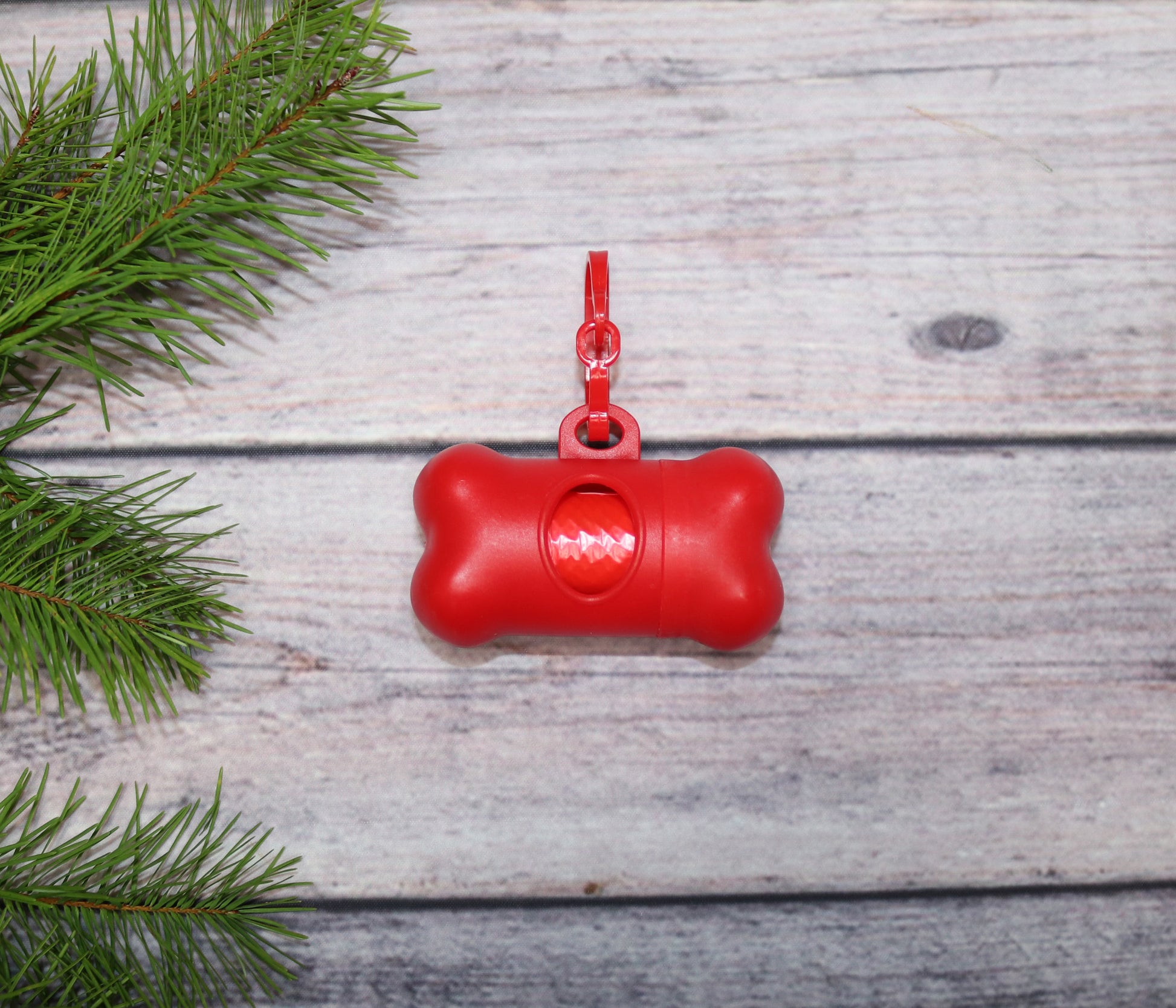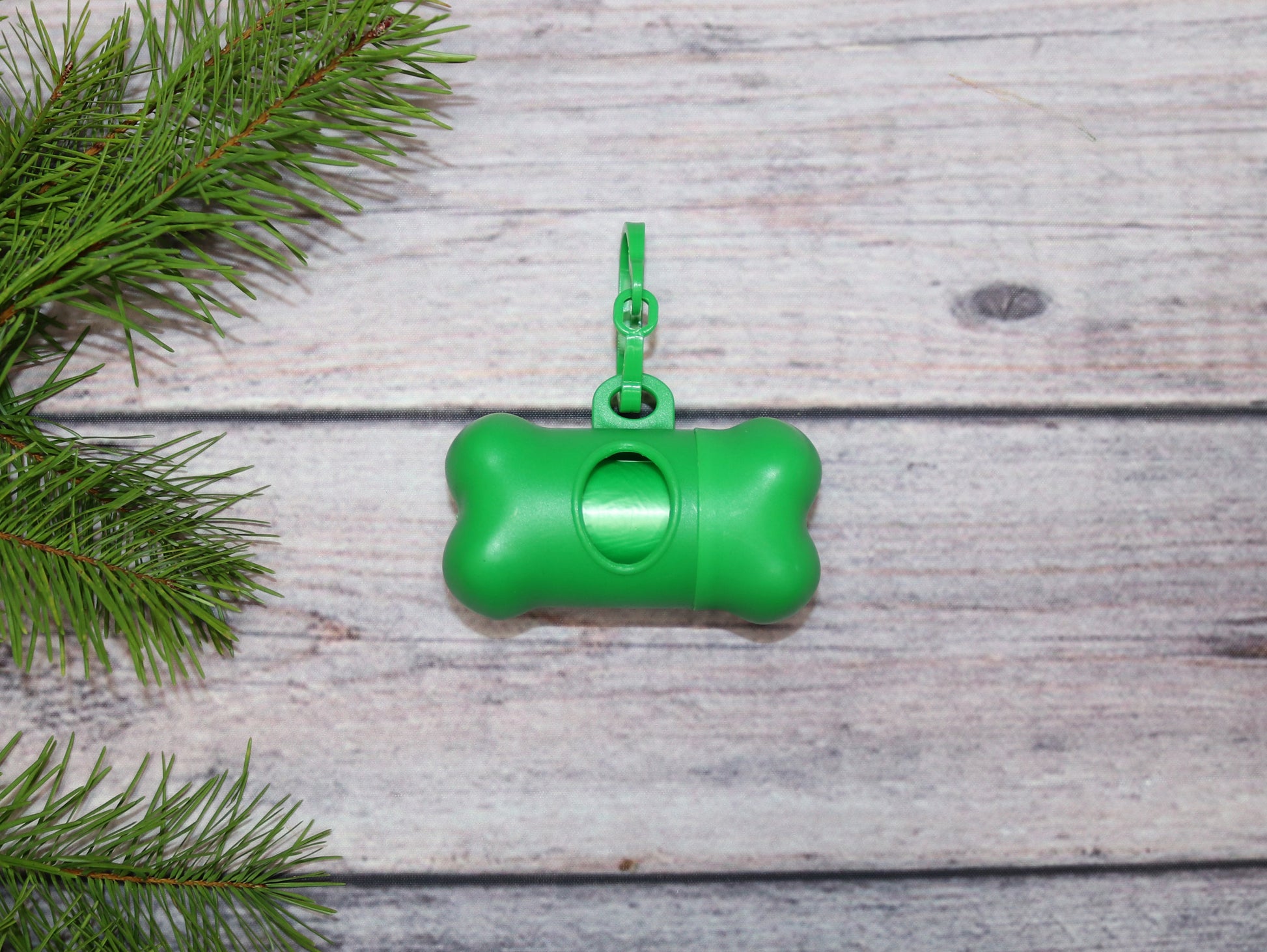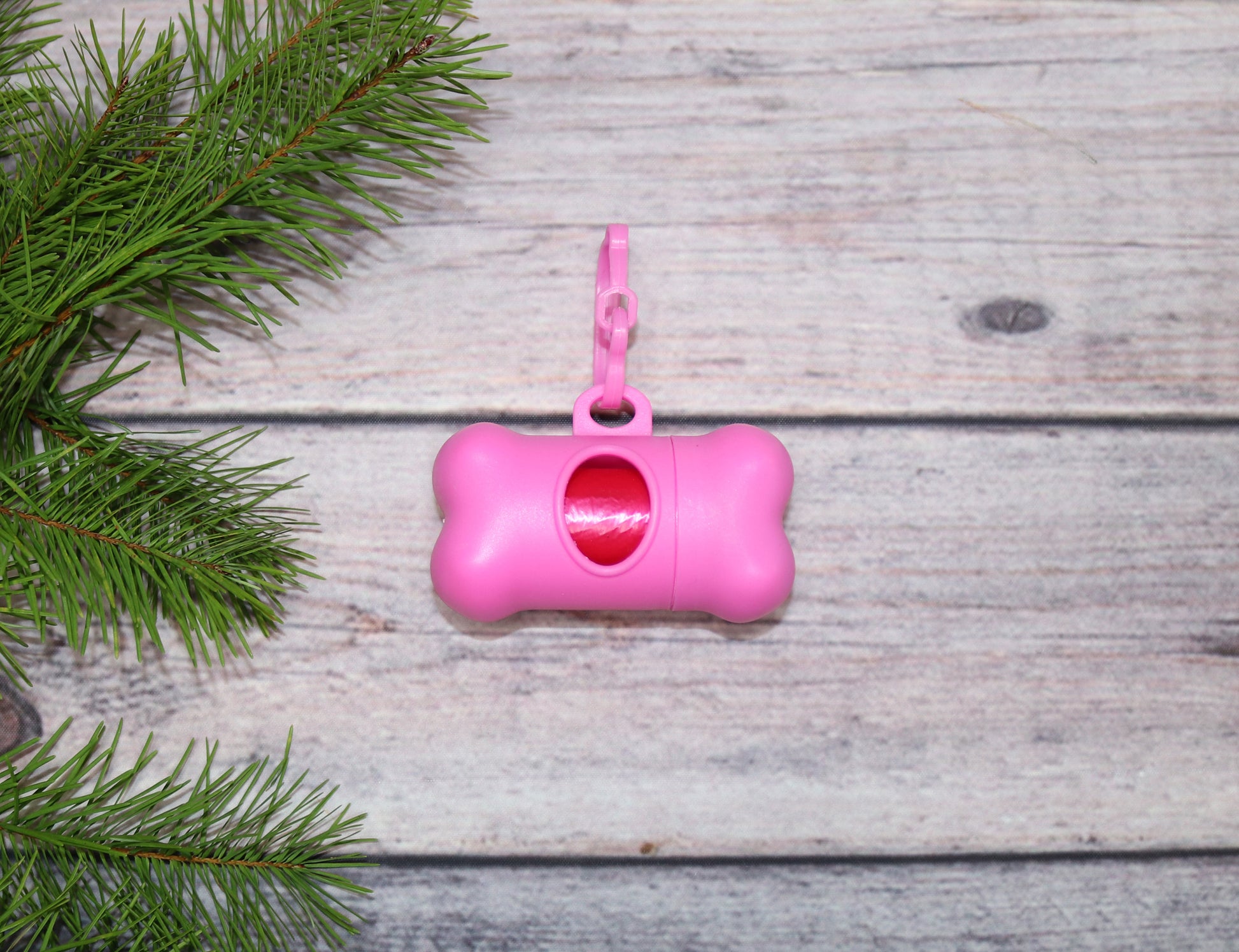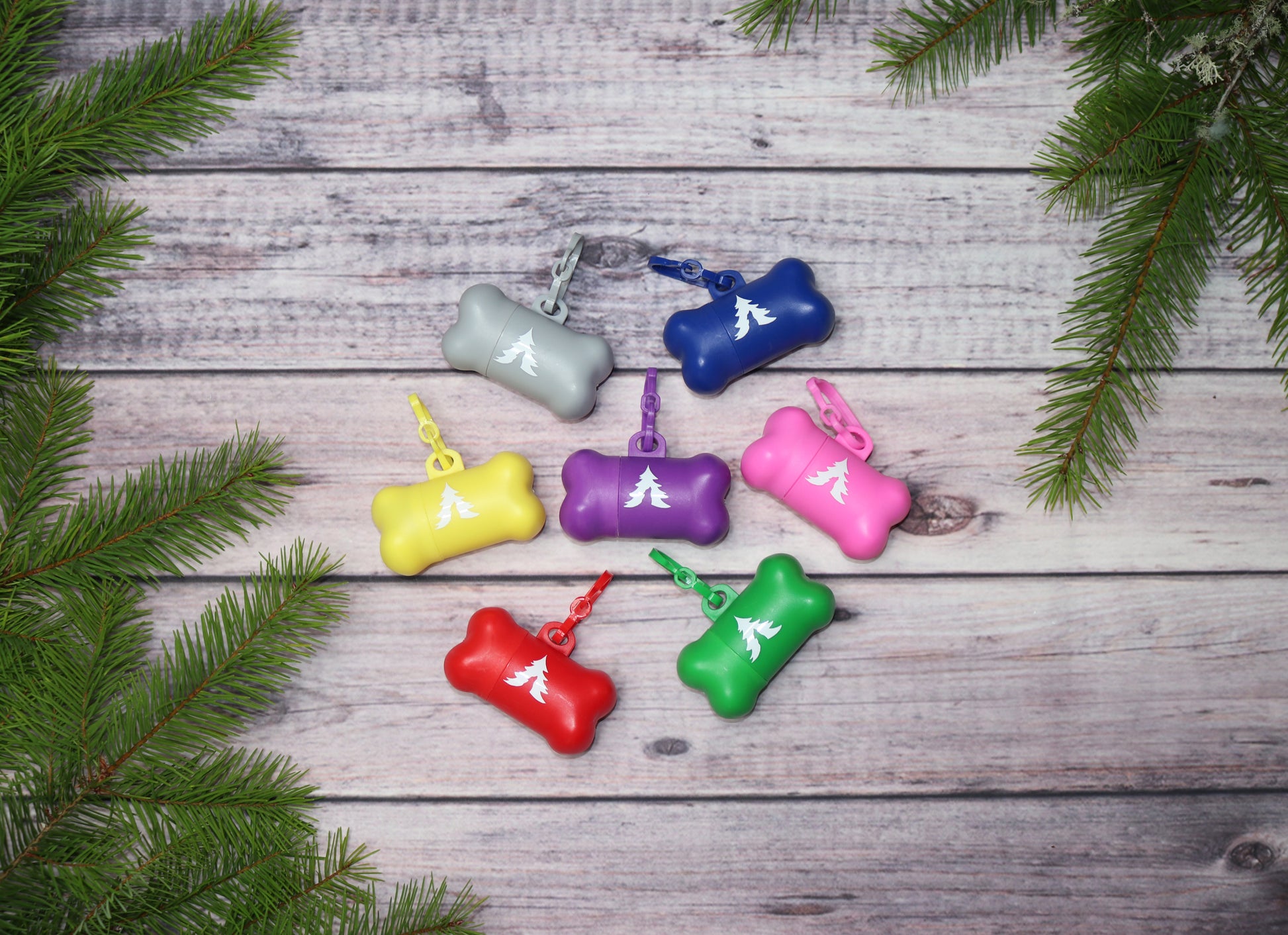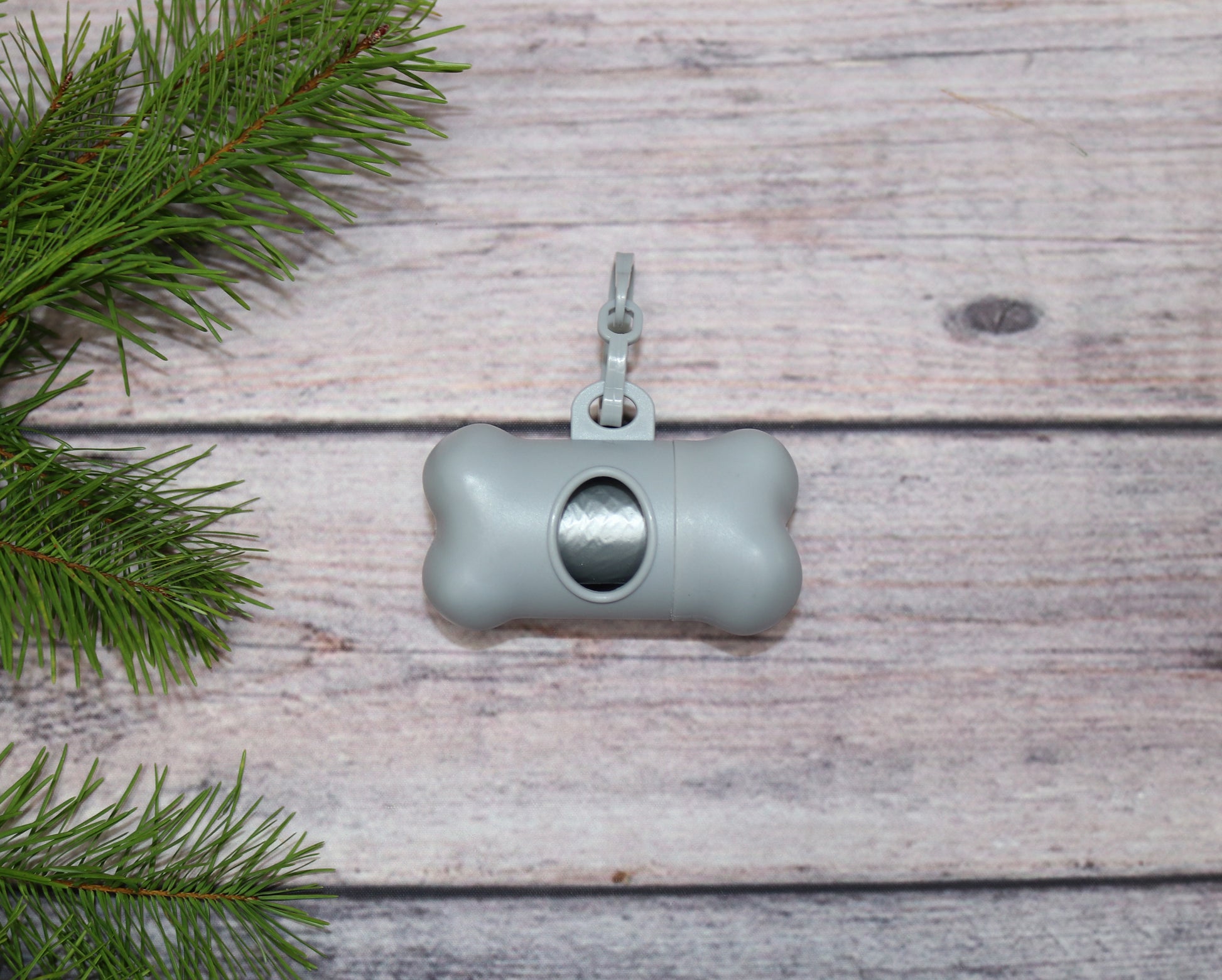 A dog bone shaped poop bag holder for those times you need a baggie for when your dog does their business. 7 colors to choose from there is a color to match your collar and leash! Easily attaches to yourself or your dogs leash, comes with 10 bags to start with.