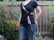 The Cherry Blossom Dreams Handsfree Leash Attachment lets you walk your dog hands-free by wearing it at your waist or crossbody. Adjustable up to 58 inches, it fits comfortably while you stay active. Featuring a durable carabiner rated to hold 110 lbs, it securely attaches to your dog’s leash with a screw locking mechanism for added safety. Choose between two widths—1.5 inches for large and extra-large dogs or 1 inch for medium and smaller breeds. Crafted from the same strong material as your dog's leash, it ensures lasting reliability. Leash is sold separately.