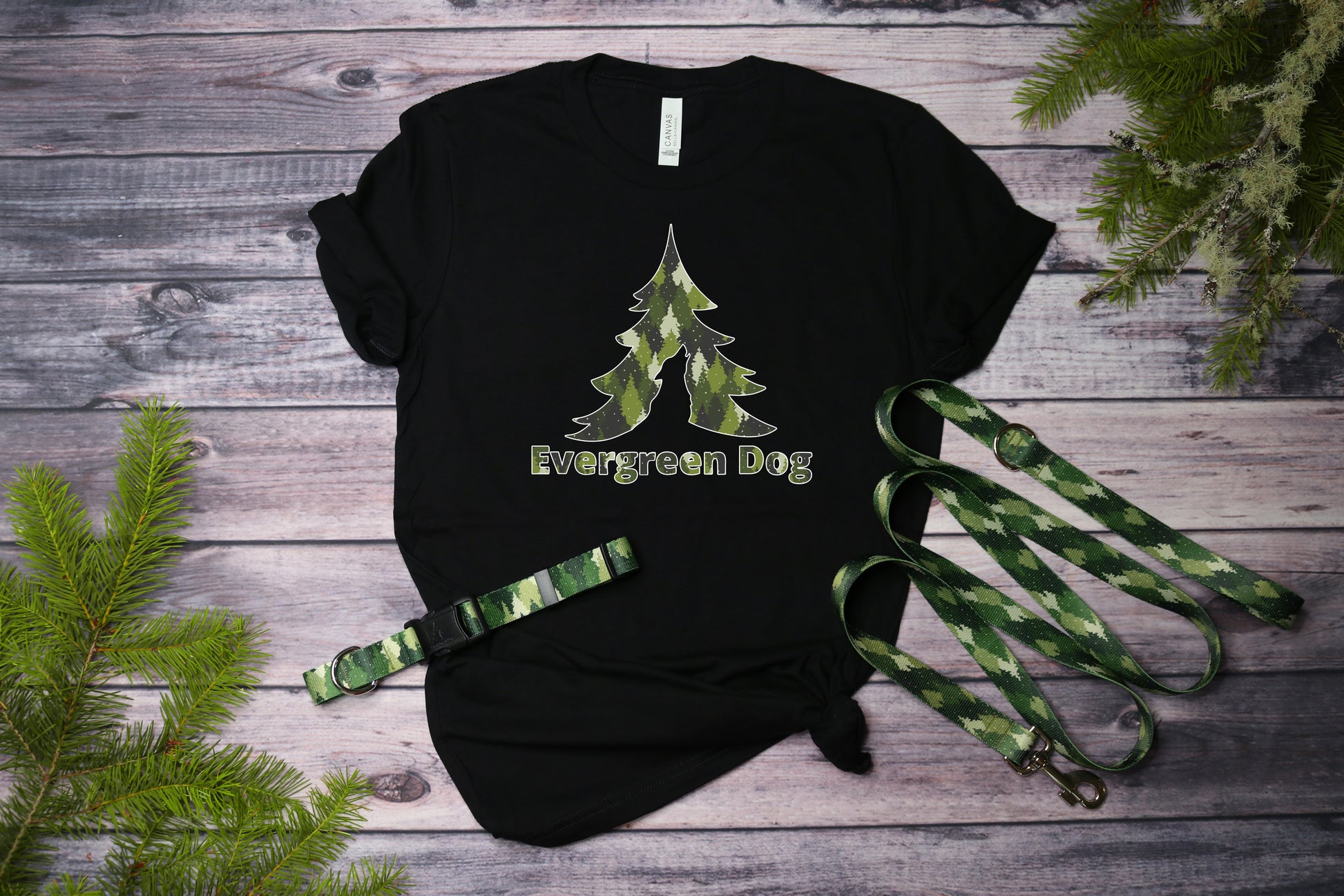 This Green Camo Trees Unisex T-Shirt offers exceptional comfort with its soft fabric, featuring a unique design inspired by your dog's collar and leash. Its thoughtful design ensures both durability and softness, making it a reliable addition to your casual wardrobe. Collar and leash not included.