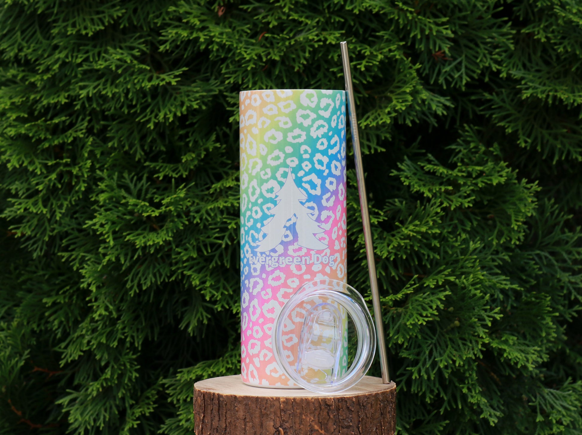 The Rainbow Leopard 20oz Tumbler features a double-wall vacuum insulated design to maintain your beverages’ temperature longer, making it ideal for year-round use. Crafted from durable 304 stainless steel, it offers enhanced longevity compared to standard plastic tumblers. The push-on lid protects against dust and minimizes spills, while the silicone base prevents sliding on smooth surfaces and includes a metal straw. This tumbler combines practicality and durability for reliable performance in any setting.