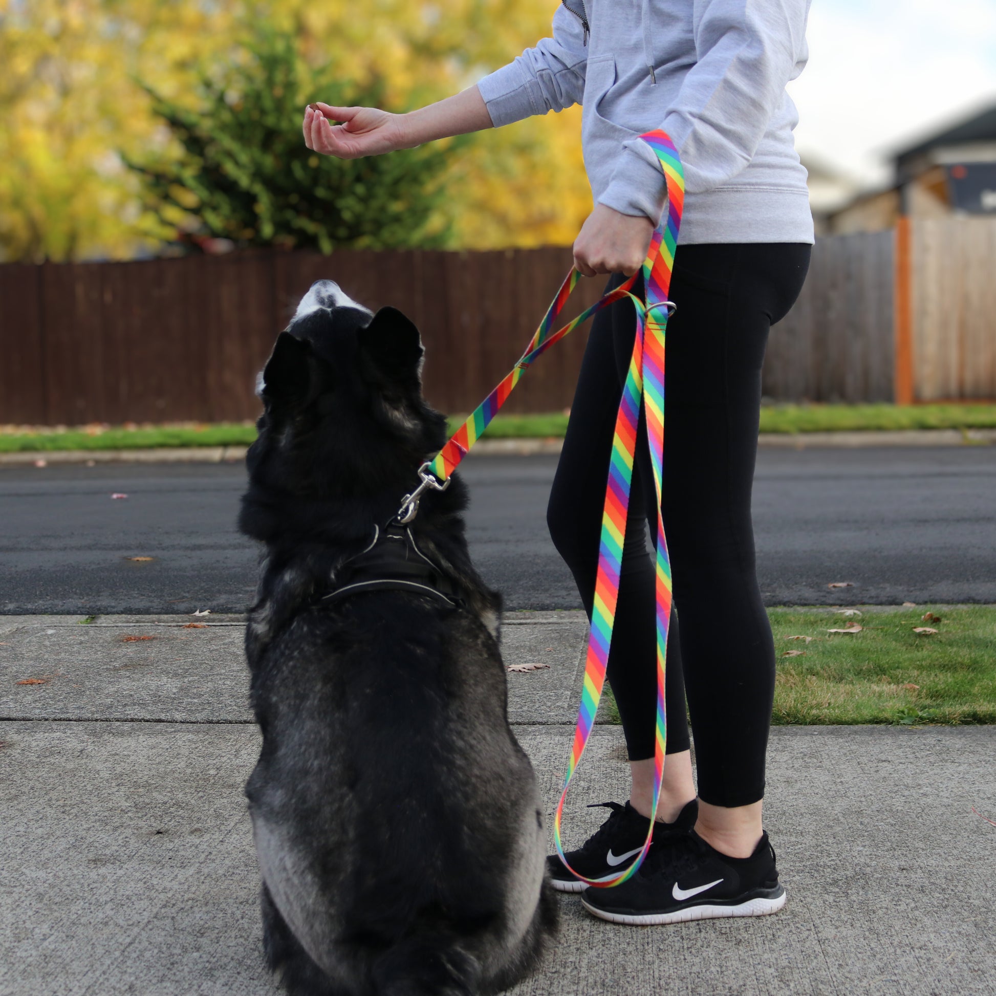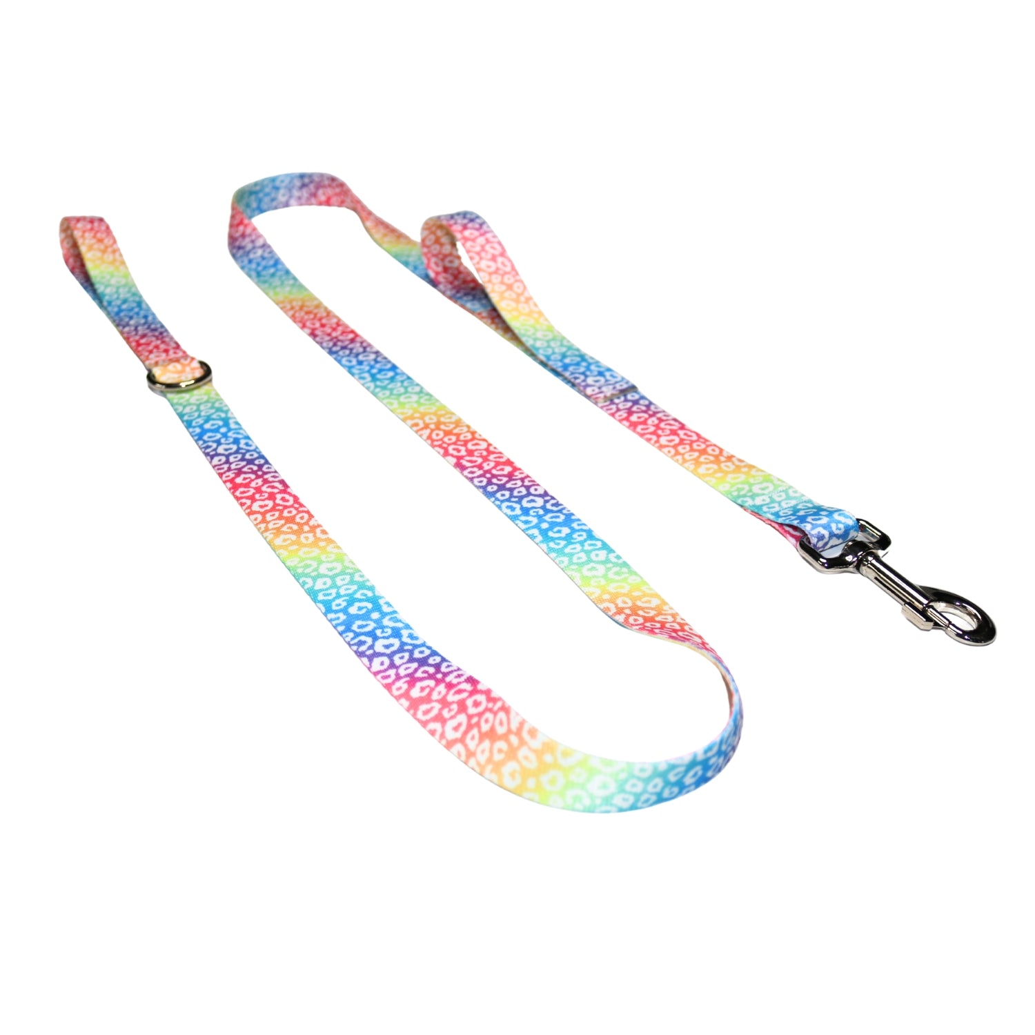The Rainbow Leopard Double Handle Leash is designed for everyday walks and those unpredictable moments, our double handled dog leash gives you added control exactly when you need it. This classic leash features a second, strategically placed handle that allows you to keep your dog close by your side—perfect for busy sidewalks, crossings, or situations that require extra safety and guidance.