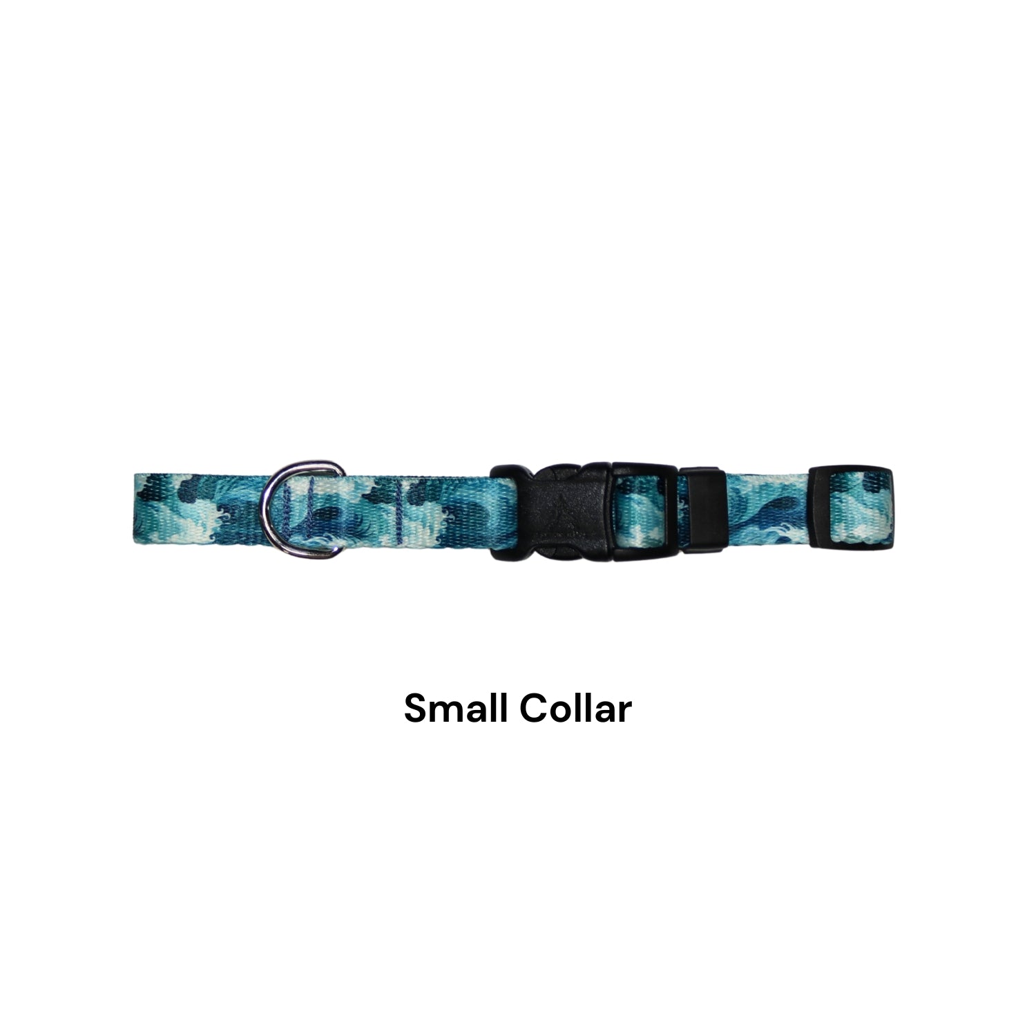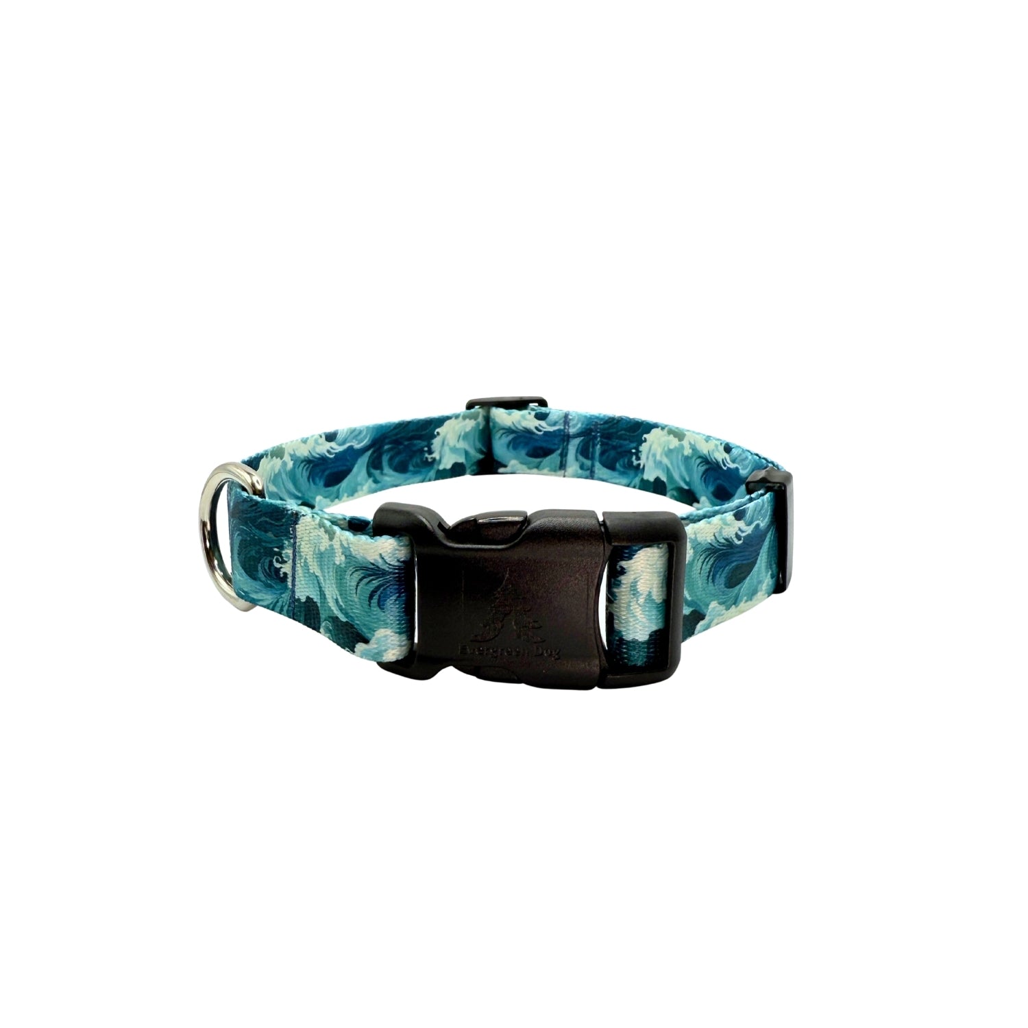 Crafted from materials designed for mountain climbing, our collars offer exceptional strength and durability. The Sublime Waves Collars come in sizes from X-Small to X-Large, see the sizing chart for your dog's recommended collar size. Made from 100% polyester, it is fully machine washable and maintains its vibrant colors without fading. This collar combines expert-level toughness with easy maintenance, ensuring reliable daily use.