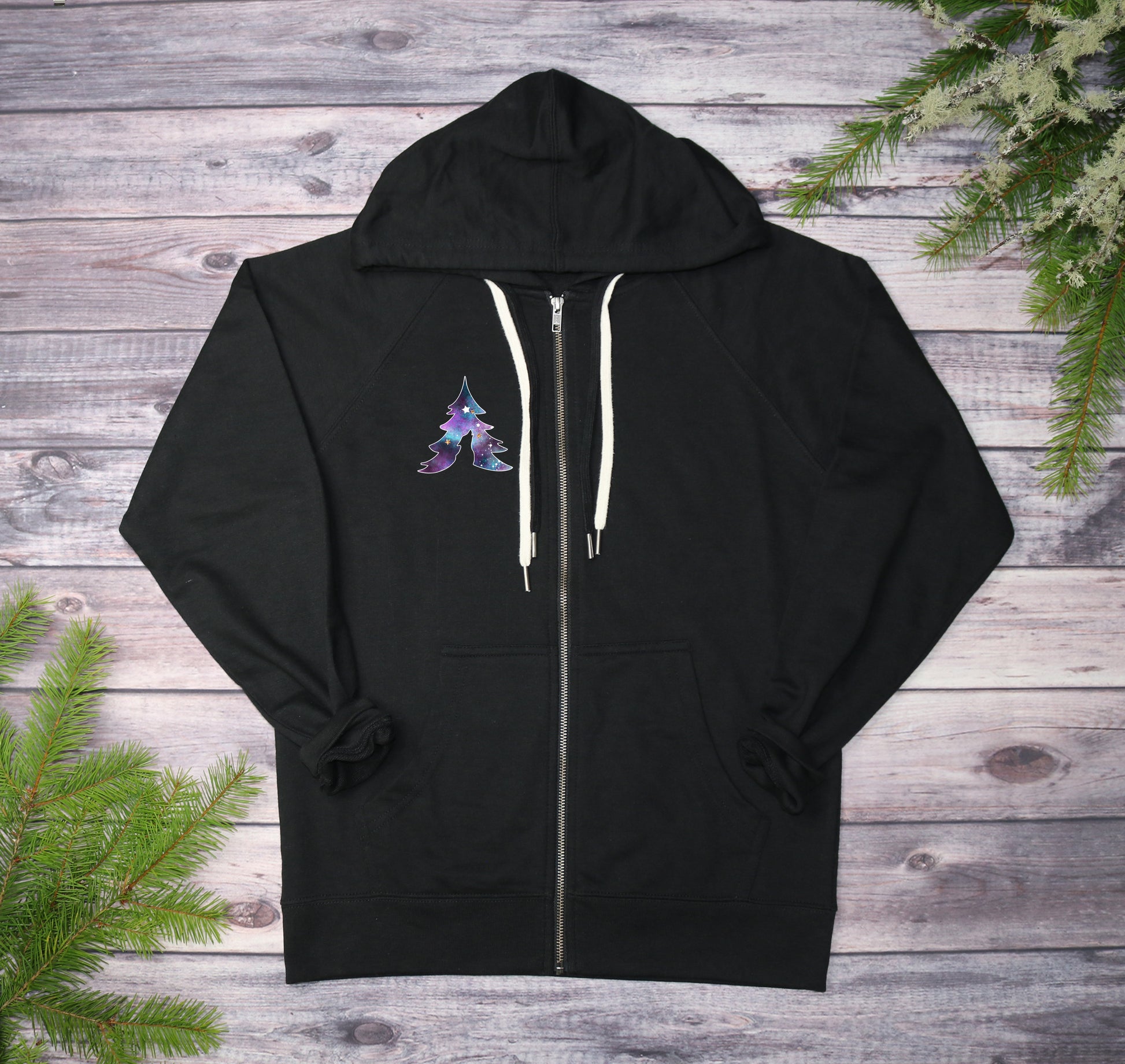 The Twilight Galaxy Lightweight Terry Zip-Up Hoodie offers a distinctive blend of style and comfort, crafted from premium lightweight loopback terry fabric for year-round wear. Featuring raglan sleeves and 1x1 ribbing at cuffs and waistband, it ensures a tailored fit with ease of movement. Unique double shoelace drawcords with antique silver tips, antique silver zipper and zipper pull add an exclusive detail, setting it apart in the market. Designed with a unisex fit and available in two color choices, this hoodie combines expert craftsmanship with versatile appeal. This Hoodie runs slightly large, size down for a snug fit.
