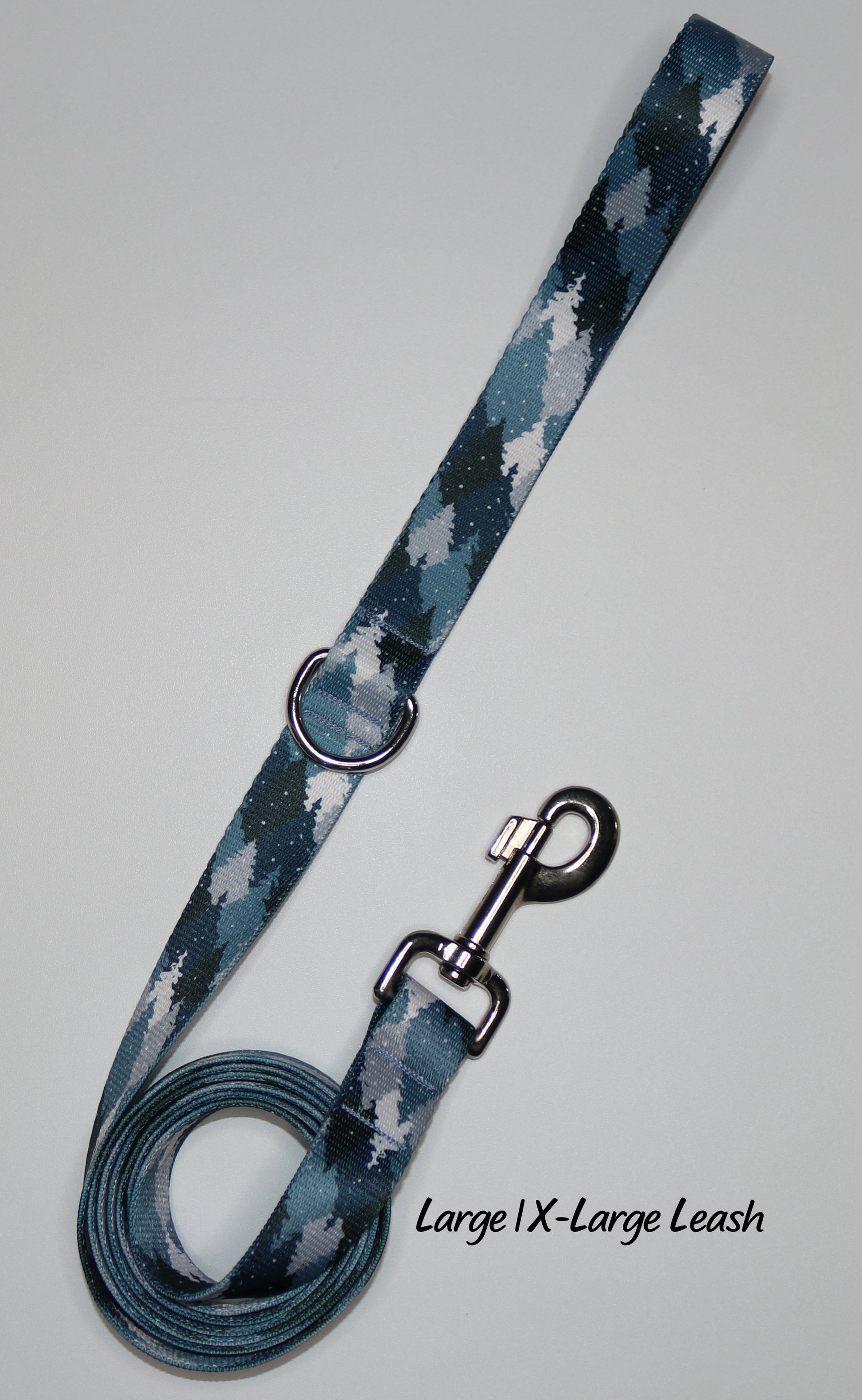 Crafted from materials designed for mountain climbing our leash offers exceptional strength and durability. The Blue Camo Trees Leash comes in 4 sizes from X-Small to Large/X-Large. Each leash is standard 6 feet long. Made from 100% polyester, it is fully machine washable and maintains its vibrant colors without fading. This leash combines expert-level toughness with easy maintenance, ensuring reliable performance on every walk.