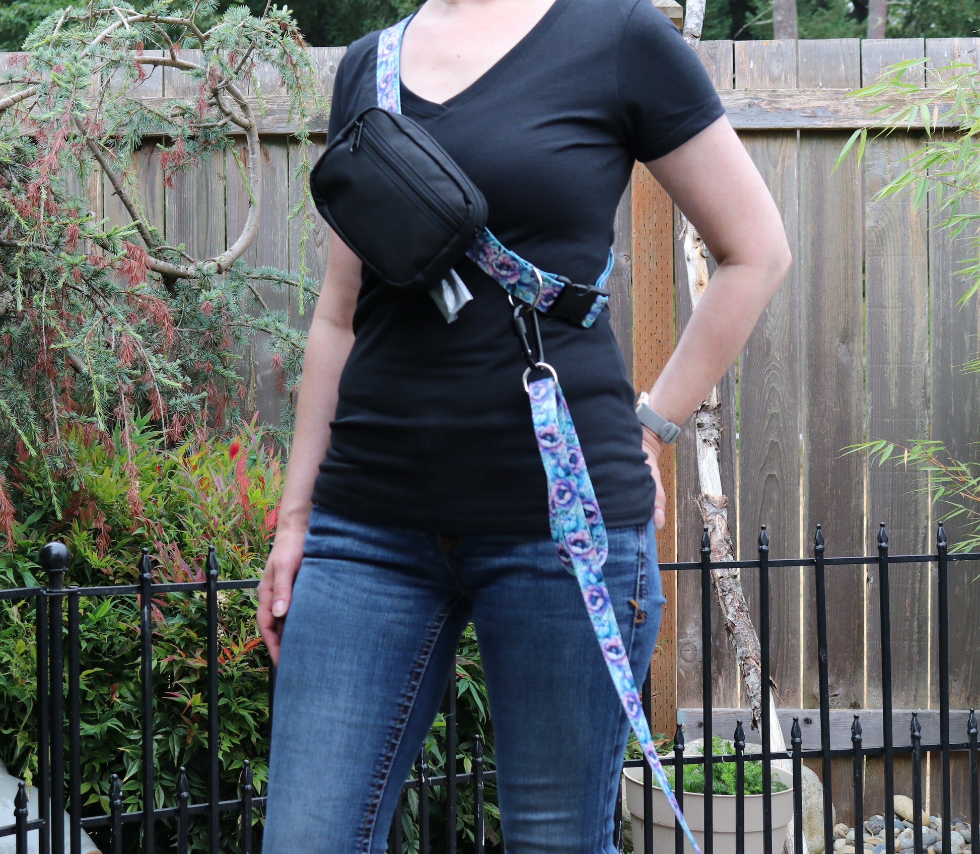 Keep all your and your dog's essentials organized with the Peony Fantasy Fanny Pack. Featuring a roomy main compartment for your items and a front pouch ideal for dog treats, this pack also includes a discreet bag dispenser on the back with an internal zipper pocket that holds two rolls, ensuring you're always prepared. Measuring 5" x 7", it is crafted from 50% recycled, durable materials. Choose between a 1.5-inch or 1-inch strap for a comfortable fit, with the 1.5-inch recommended for larger dogs and the 1-inch for smaller breeds. Each pack comes with a carabiner clip for the option to go handsfree and an optional free paw decoration.