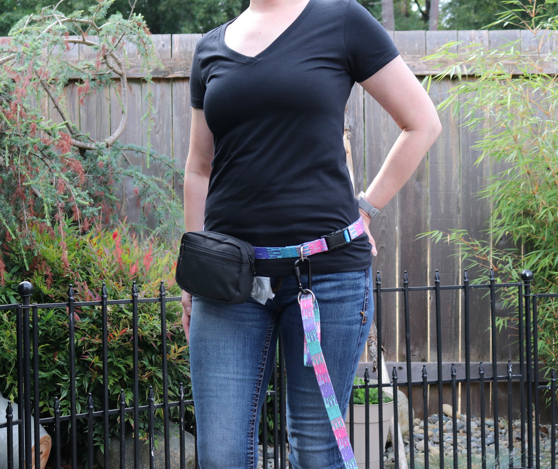 Keep all your and your dog's essentials organized with the Playful Drips Fanny Pack. Featuring a roomy main compartment for your items and a front pouch ideal for dog treats, this pack also includes a discreet bag dispenser on the back with an internal zipper pocket that holds two rolls, ensuring you're always prepared. Measuring 5" x 7", it is crafted from 50% recycled, durable materials. Choose between a 1.5-inch or 1-inch strap for a comfortable fit, with the 1.5-inch recommended for larger dogs and the 1-inch for smaller breeds. Each pack comes with a carabiner clip for the option to go handsfree and an optional free paw decoration.
